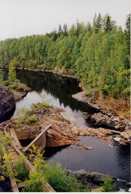 Jänisjokea Ruskeakosken läheisen padon alapuolella.